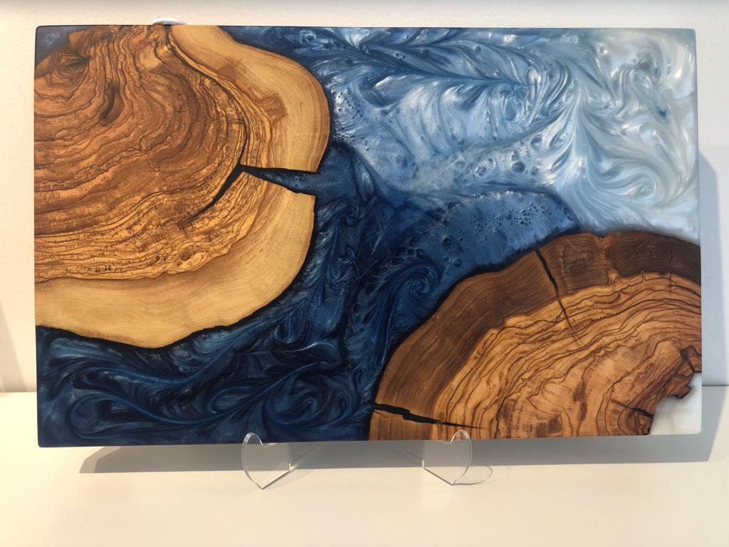 Zeytin ağacı ve epoksi kullanılarak, el işçiliği ile hazırlanmaktadır.